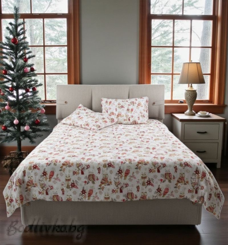 Коледен спален комплект "БУХАЛИ", 100% ПАМУК/РАНФОРС, 4 ЧАСТИ,