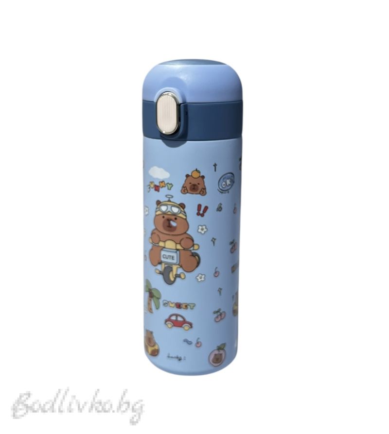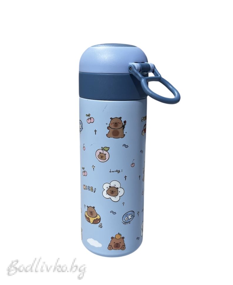 ДЕТСКА ТЕРМОС БУТИЛКА С КАПИБАРА- ЗА ВОДА - СИНЯ