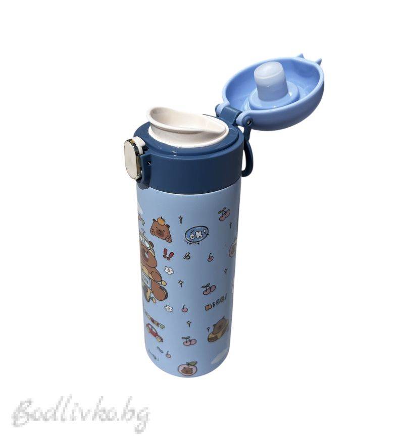 Основни характеристики: * Двойностенна вакуумна изолация за поддържане на температурата. * Неръждаема стомана 304 - безопасна и издръжлива. * Дизайн, подходящ за деца с удобна сламка. * Атрактивен дизайн с капибара. * Лесна за почистване.