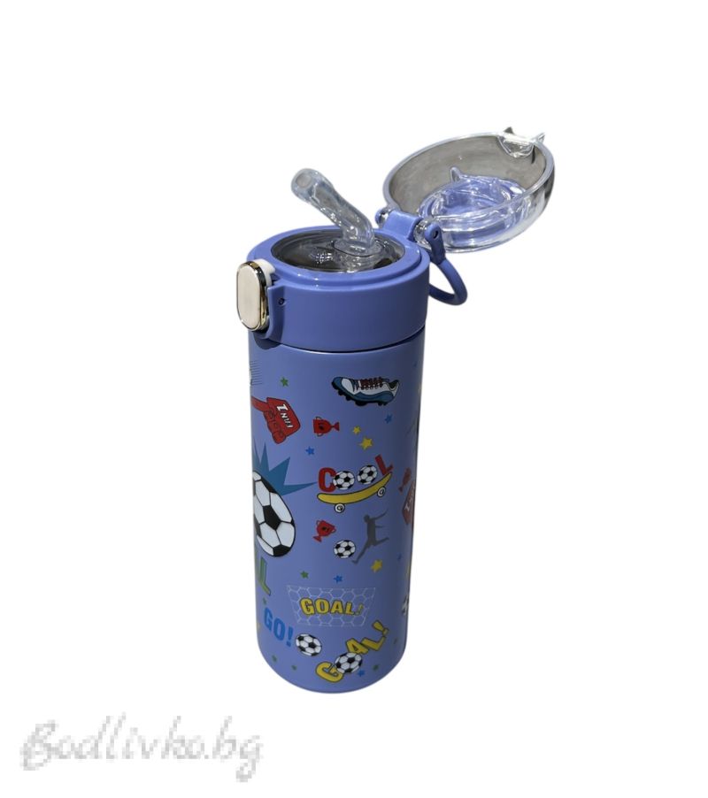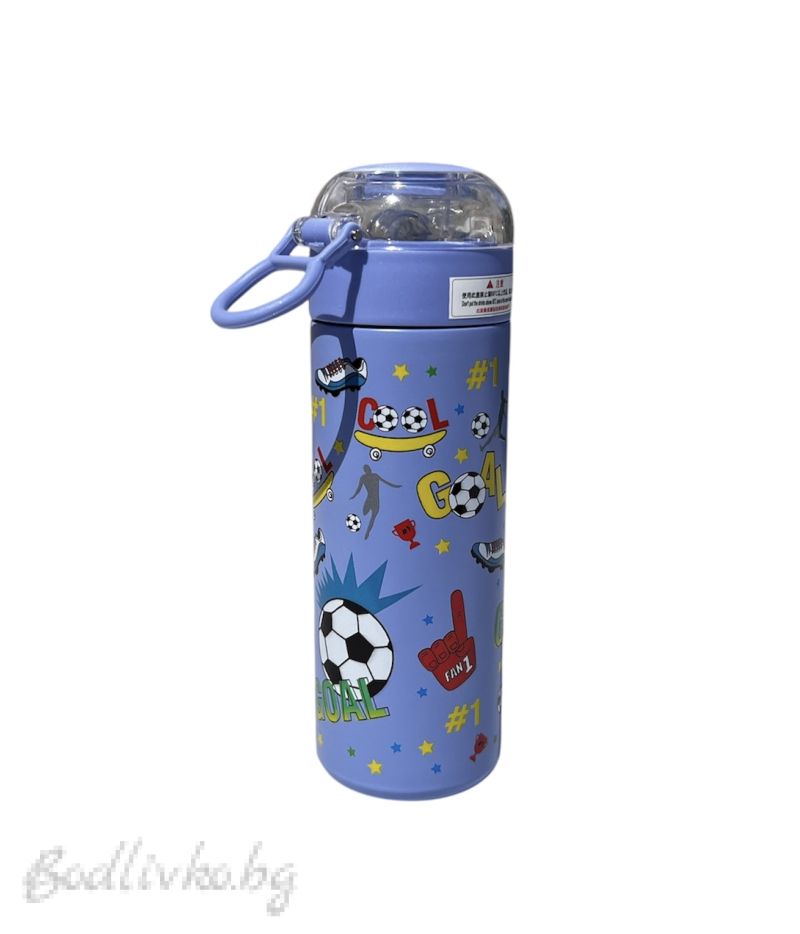 ДЕТСКА ТЕРМОС БУТИЛКА ФУТБОЛ- ЗА ВОДА - СИНЯ