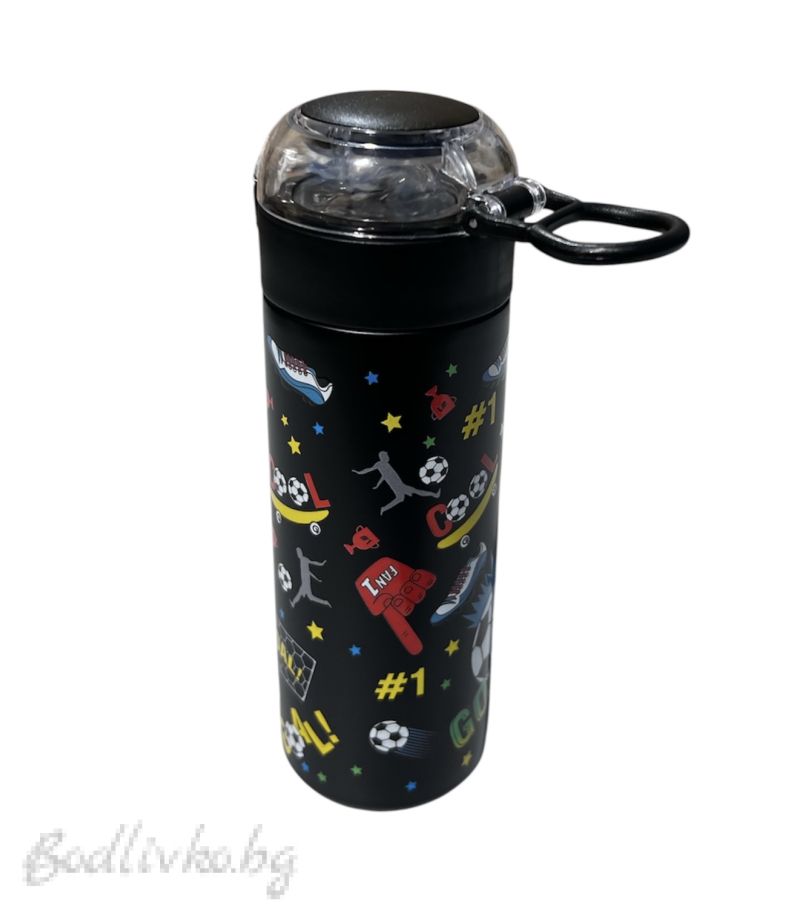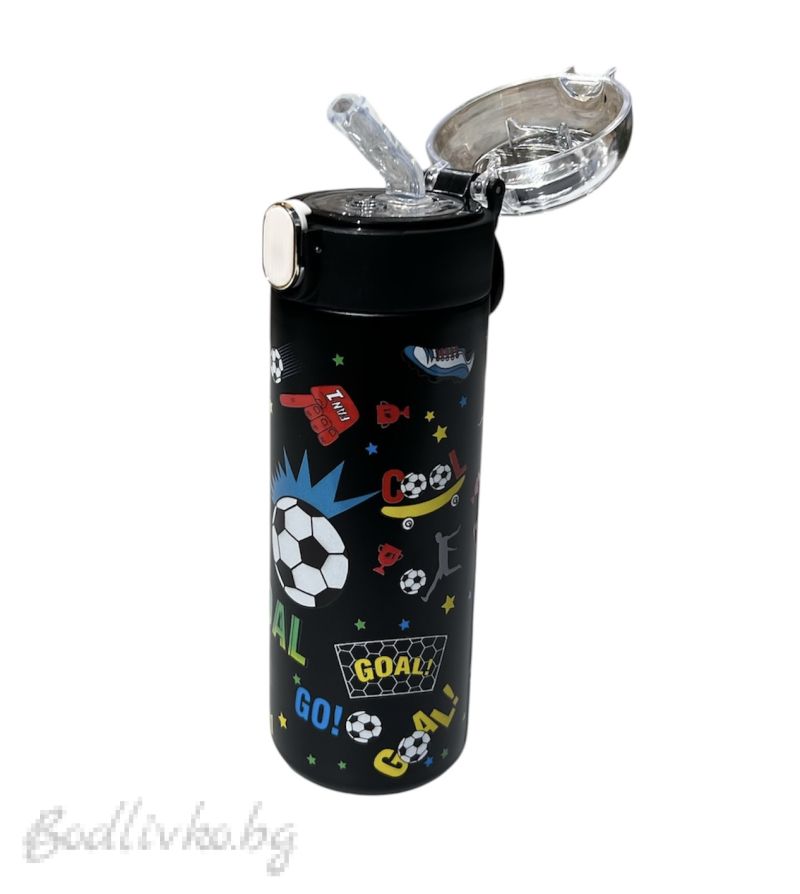 ДЕТСКА ТЕРМОС БУТИЛКА ФУТБОЛ- ЗА ВОДА - ЧЕРНА