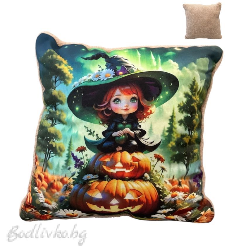 ДЕКОРАТИВНА ВЪЗГЛАВНИЦА ВЕЩИЦА С ТИКВА