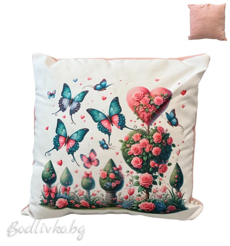 ДЕКОРАТИВНА ВЪЗГЛАВНИЦА ПЕПЕРУДКИ И СЪРЦЕ