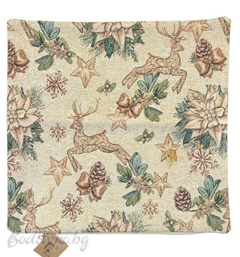 КАЛЪФКА за възглавничка, КОЛЕДНИ ЕЛЕНИ, ЖАКАРД, 45/45см.