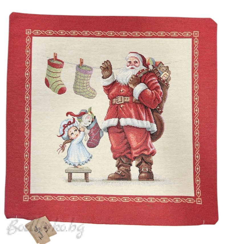 КАЛЪФКА за възглавничка, ДЯДО КОЛЕДА И ЧОРАПЧЕТА, ЖАКАРД, 45/45см.