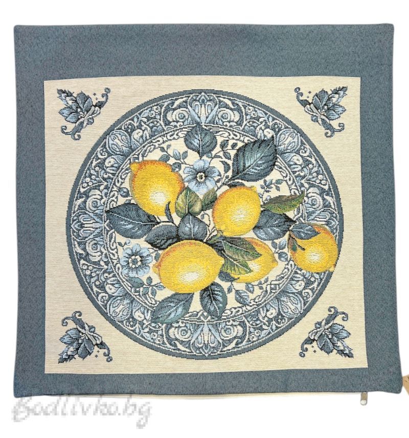 КАЛЪФКА за възглавничка, ЛИМОНИ В СИНЬО, ЖАКАРД, 45/45см.