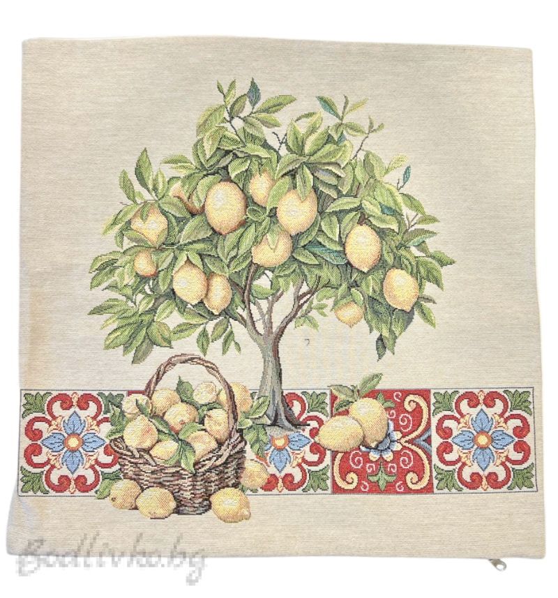 КАЛЪФКА за възглавничка, ДЪРВО С ЛИМОНИ, ЖАКАРД, размер: 45/45см.