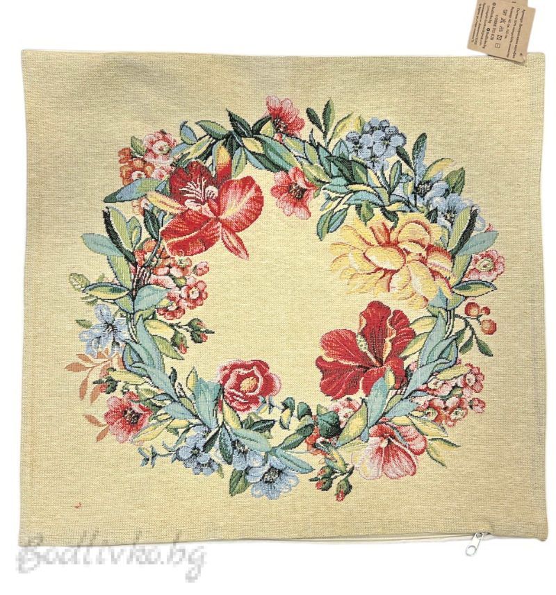 КАЛЪФКА за възглавничка, ВЕНЧЕ С ЦВЕТЯ, размер: 45/45см.