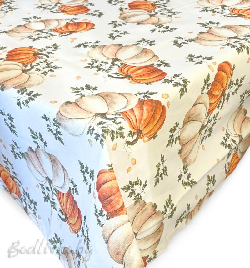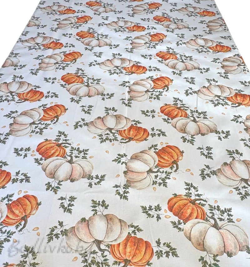 ПОКРИВКА ЗА МАСА ТИКВИ В БЯЛО И ОРАНЖЕВО, ХИДРОФОБИРАНА
