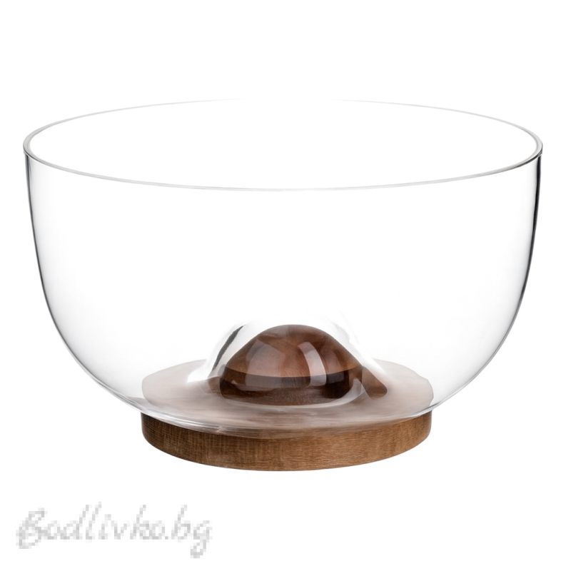 ЛУКСОЗНА СТЪКЛЕНА КУПА С ДЪРВЕНА ОСНОВА, DANNY HOME, РАЗМЕР 24Х10СМ.