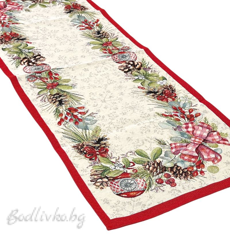 Внесете елегантност и стил във вашия дом с този красив жакардов тишлайфер! Декориран с КОЛЕДНИ МОТИВИ, той е перфектният акцент за вашата празнична трапеза.