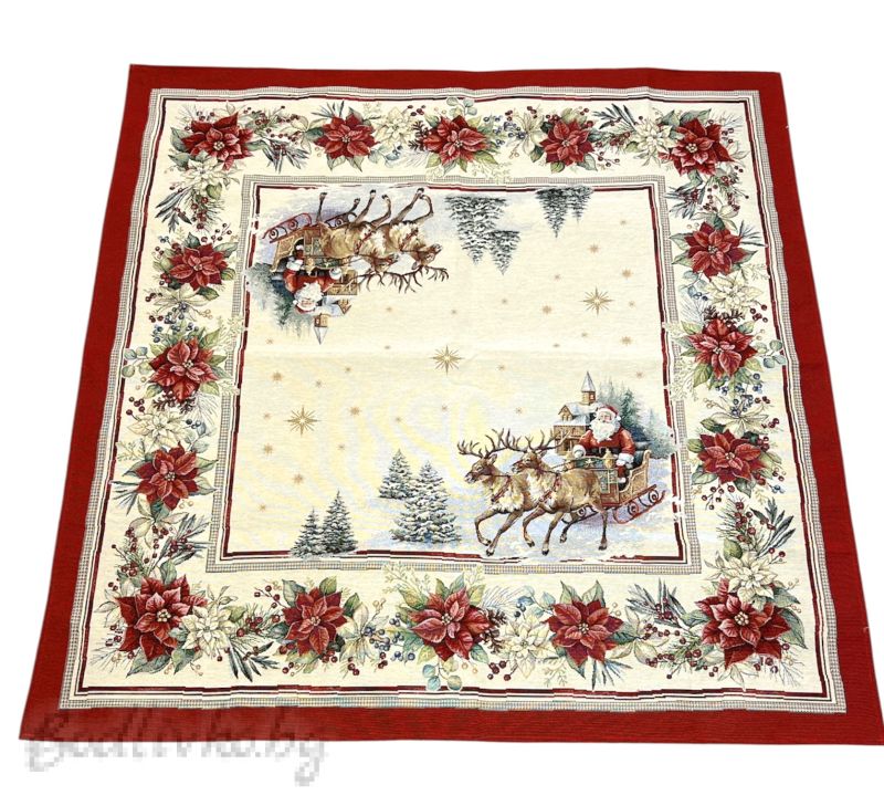 Пренесете духа на Коледа във вашия дом с нашето елегантно жакардово каре "Коледа с Дядо Коледа"! Този изискан текстилен акцент ще внесе топлина и празнично настроение на вашата трапеза или като декоративен елемент в интериора.