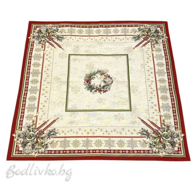 Добавете празничен блясък към вашия дом с нашето каре жакард "Коледни Свещи". Със своите 100/100 см, то е идеално за малки маси или като декоративен акцент.