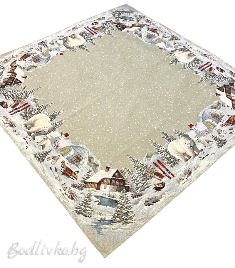 Прегърнете зимната приказка с нашето каре жакард с очарователен дизайн на мечки. Със своите 100/100 см, то е идеалният акцент за вашия дом.
