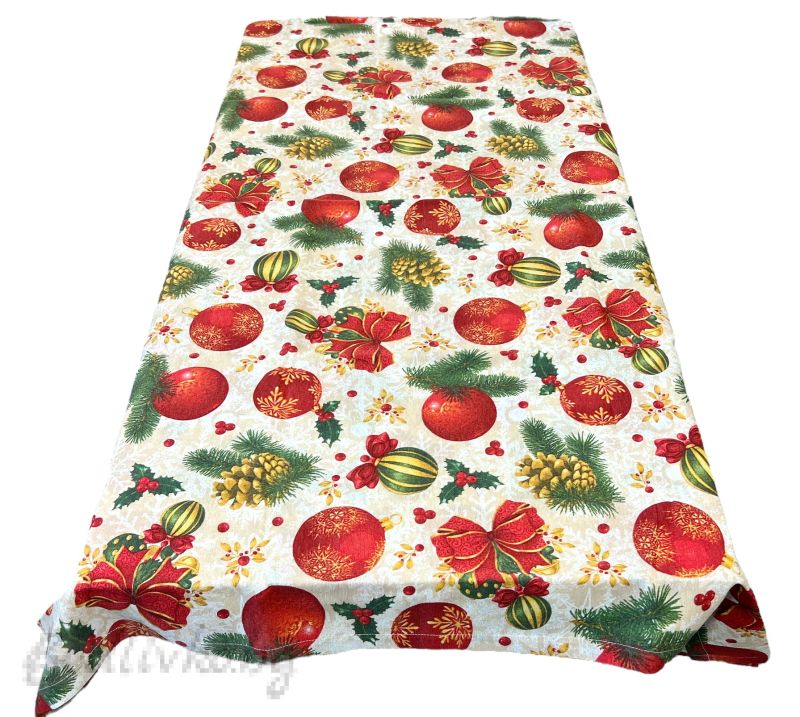 КОЛЕДНА ПОКРИВКА ЗА МАСА, ЧЕРВЕНИ ТОПКИ