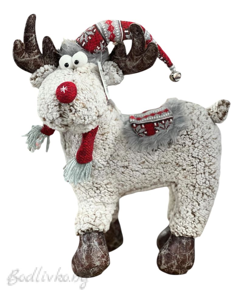 Този Коледен Елен е изработен от меки и приятни на допир материали, което го прави идеален за прегръщане и декориране. С очарователните си детайли, като червения нос и шалче, той е не само декорация, но и верен спътник през коледните празници. Поставете го под елхата, на камината или където и да е, за да създадете топла и уютна атмосфера.