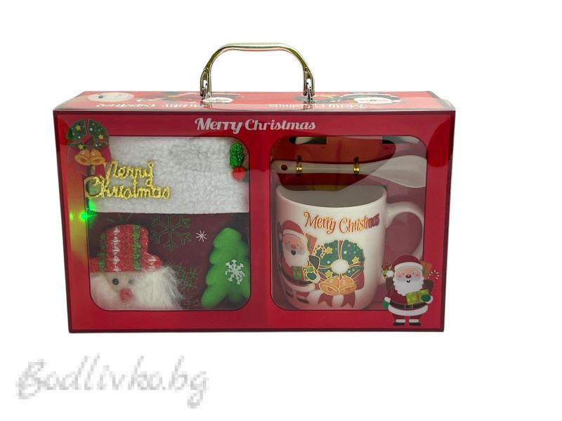 Подарете топлина и уют с този прекрасен Комплект Коледна Чаша с Чинийка и Лъжичка. Идеален за любимите ви топли напитки през студените зимни дни. Комплектът е опакован в луксозна, светеща кутия с размери 29/17см, което го прави готов за подаряване и впечатляващ подарък за вашите близки и приятели.