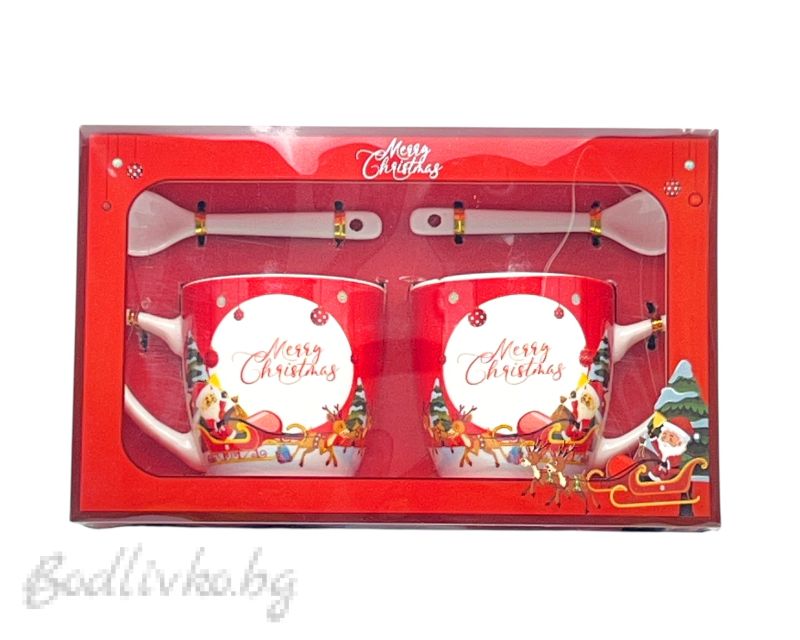 Подарете си коледно настроение с този прекрасен комплект от две коледни чаши и лъжички!