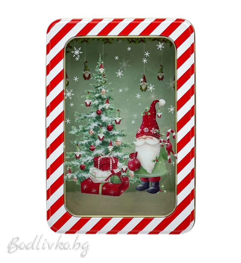 Съхранете вашите сладки изкушения в тази очарователна метална кутия! С размери 19/13 см, тя е идеална за коледни бисквити и други лакомства. Декорирана с празничен мотив, тази кутия е чудесно допълнение към вашата коледна украса и перфектен подарък.