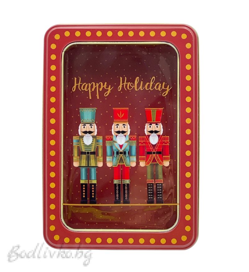 Съхранете вашите сладки изкушения в тази очарователна метална кутия! С размери 19/13 см, тя е идеална за коледни бисквити и други лакомства. Декорирана с празничен мотив, тази кутия е чудесно допълнение към вашата коледна украса и перфектен подарък.