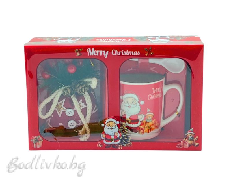 Подарете коледно настроение и топлина с нашия очарователен Коледен комплект, включващ чаша, лъжичка и играчка за елха!