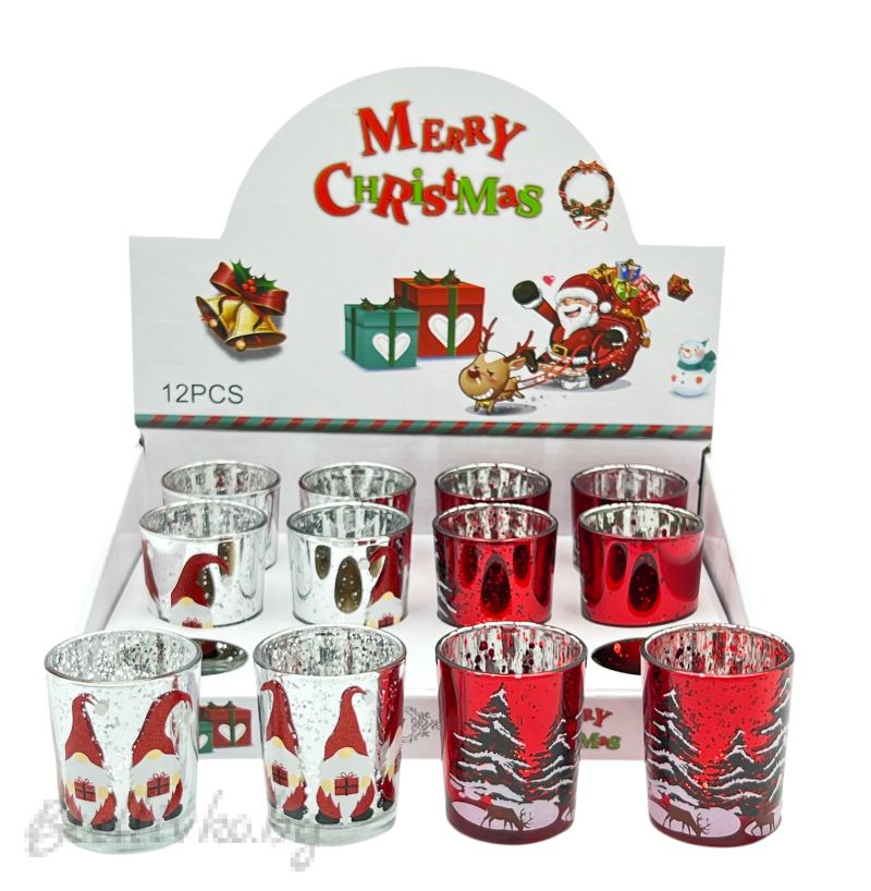 ЛУСКОЗЕН СТЪКЛЕН СВЕЩНИК С КОЛЕДНИ МОТИВИ 7 СМ. ЦЕНА ЗА БРОЙ