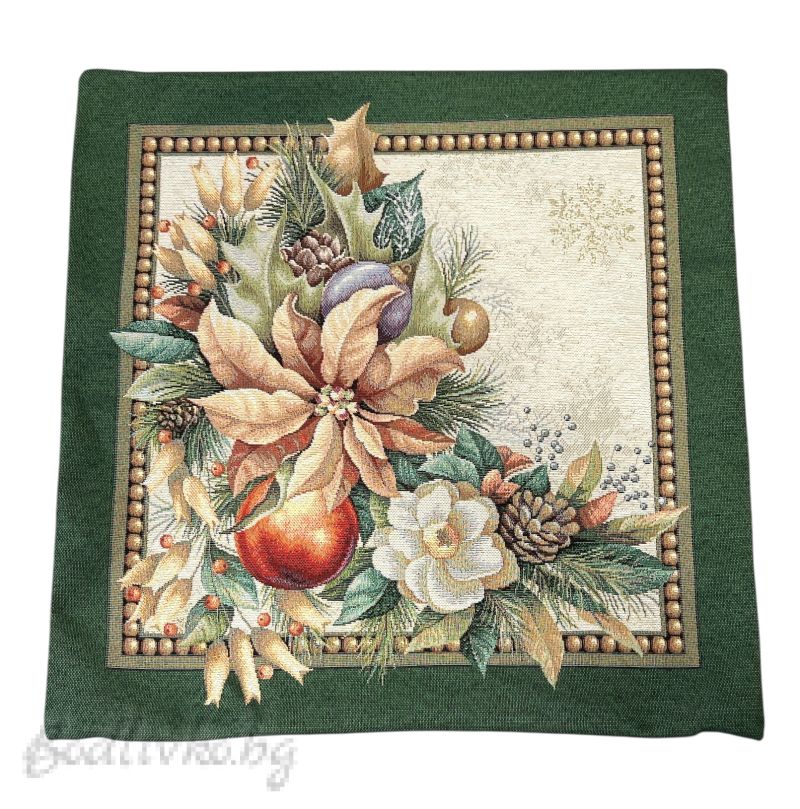 КАЛЪФКА за възглавничка, ЗЕЛЕНА, КОЛЕДНО ЦВЕТЕ , ЖАКАРД, 45/45см.
