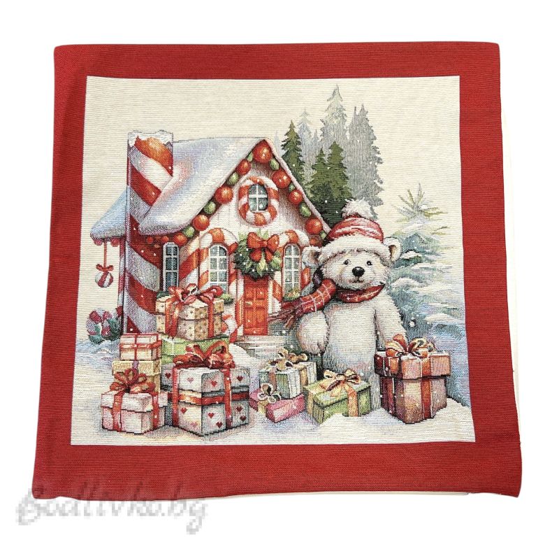 КАЛЪФКА за възглавничка, БЯЛО МЕЧЕ С ПОДАРЪЦИ, ЖАКАРД, 45/45см.