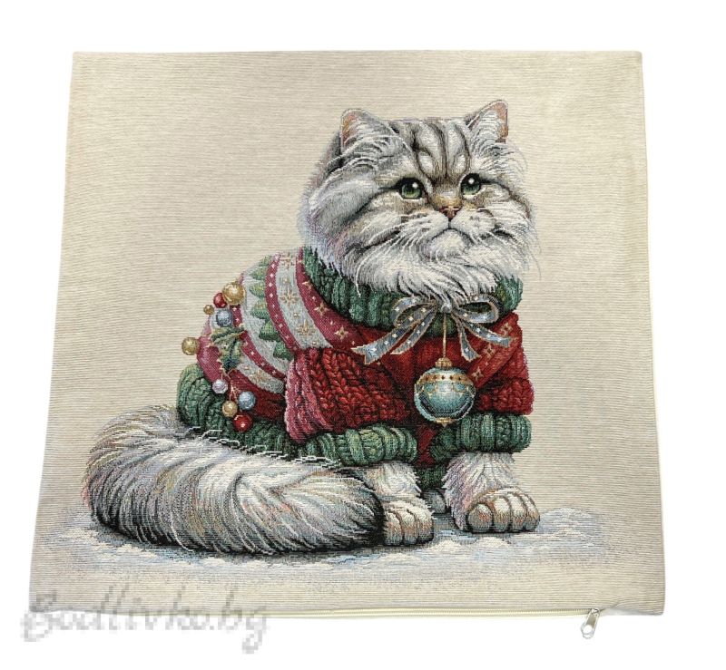 КАЛЪФКА за възглавничка, КОЛЕДЕН КОТАРАК, ЖАКАРД, 45/45см.