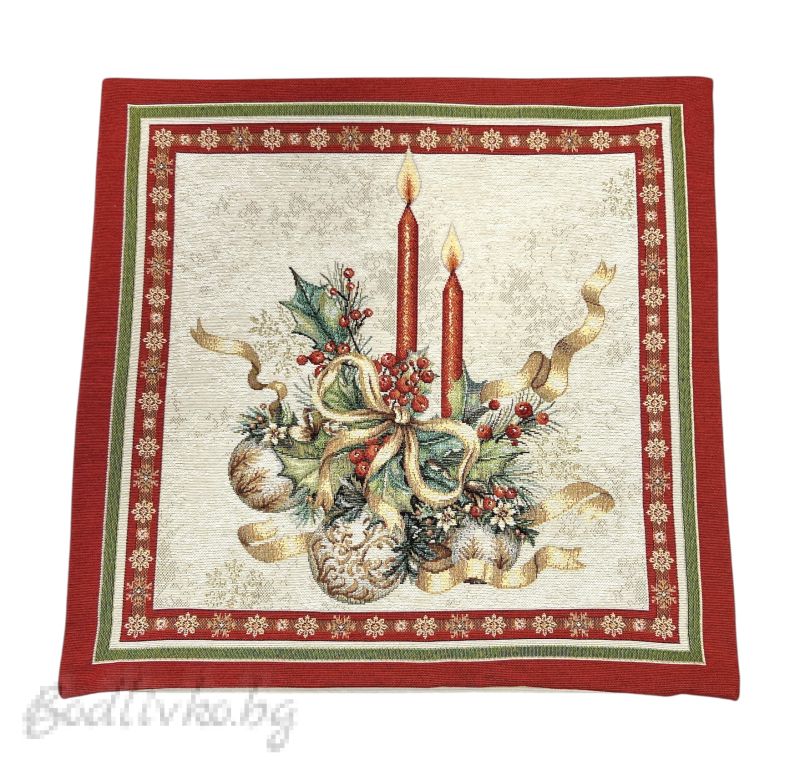 КАЛЪФКА за възглавничка, КОЛЕДНИ СВЕЩИ, ЖАКАРД, 45/45см.