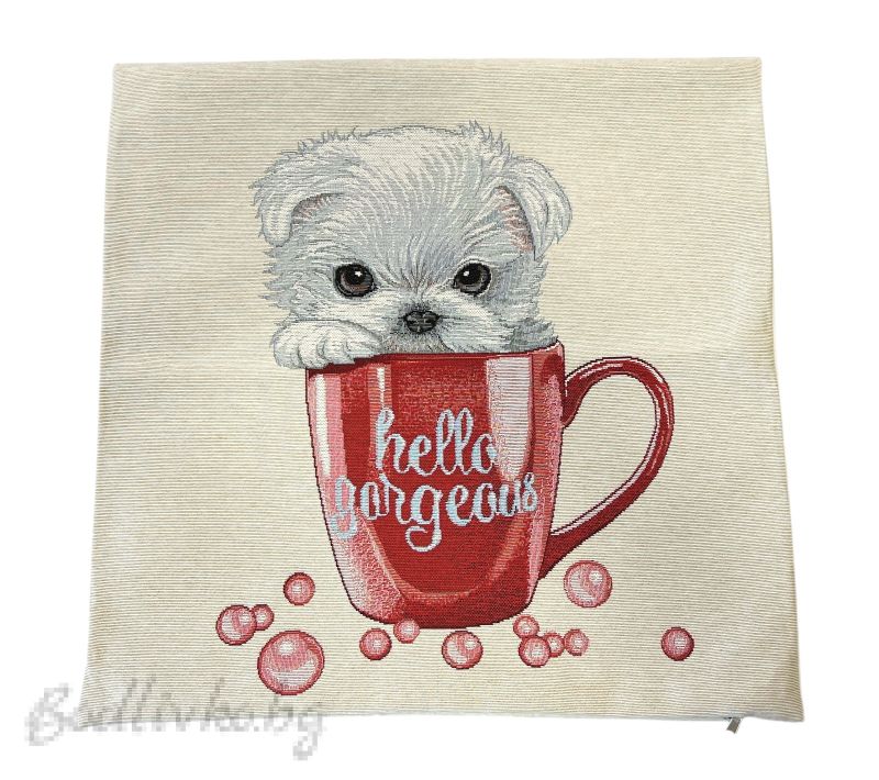 Начало ДЕКОРАТИВНИ КАЛЪФКИ И ВЪЗГЛАВНИЦИ КАЛЪФКА за възглавничка, КУЧЕ В ЧАШКА, 45/45см.