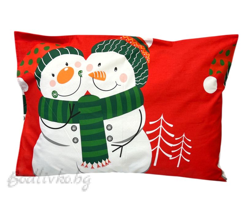 Добавете празнично настроение в дома си с нашата коледна калъфка със забавен дизайн на снежни човеци!