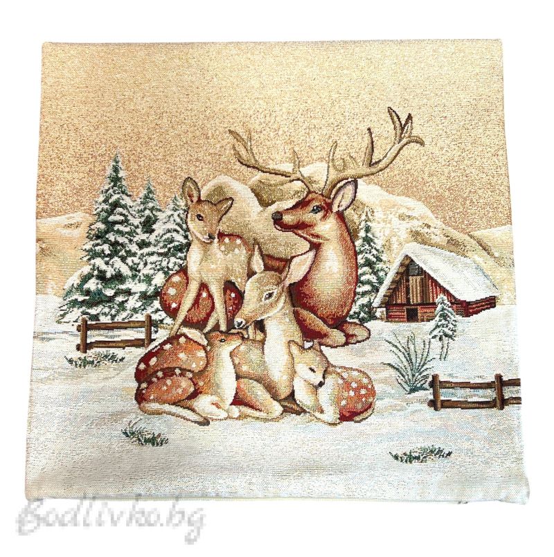 Дизайн и Материя: Калъфката е с прекрасен жакардов дизайн, изобразяващ нежно семейство елени в зимна обстановка. Използваната материя е издръжлива и приятна на допир, което гарантира дълготрайност и комфорт. Фината изработка на жакарда добавя текстура и дълбочина на изображението, което прави калъфката истинско произведение на изкуството.