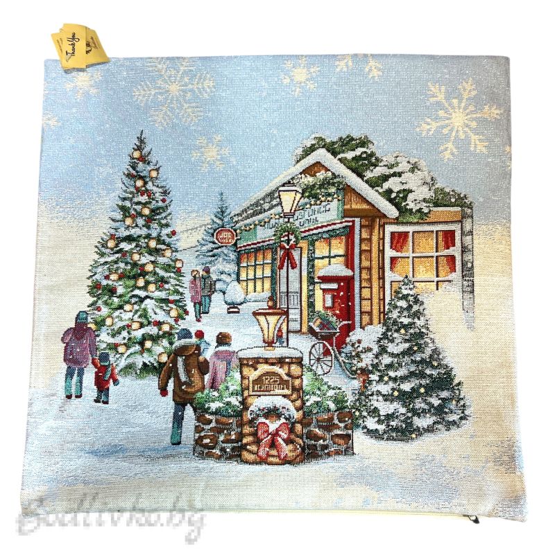 Калъфката е изработена от висококачествен текстил, който е издръжлив и лесен за поддръжка. Изображението "Снежна приказка" изобразява живописна зимна сцена с украсена коледна елха, покрити със сняг къщички и радостни деца, създавайки топла и приветлива атмосфера. Детайлните елементи и ярките цветове правят тази калъфка истинско произведение на изкуството.