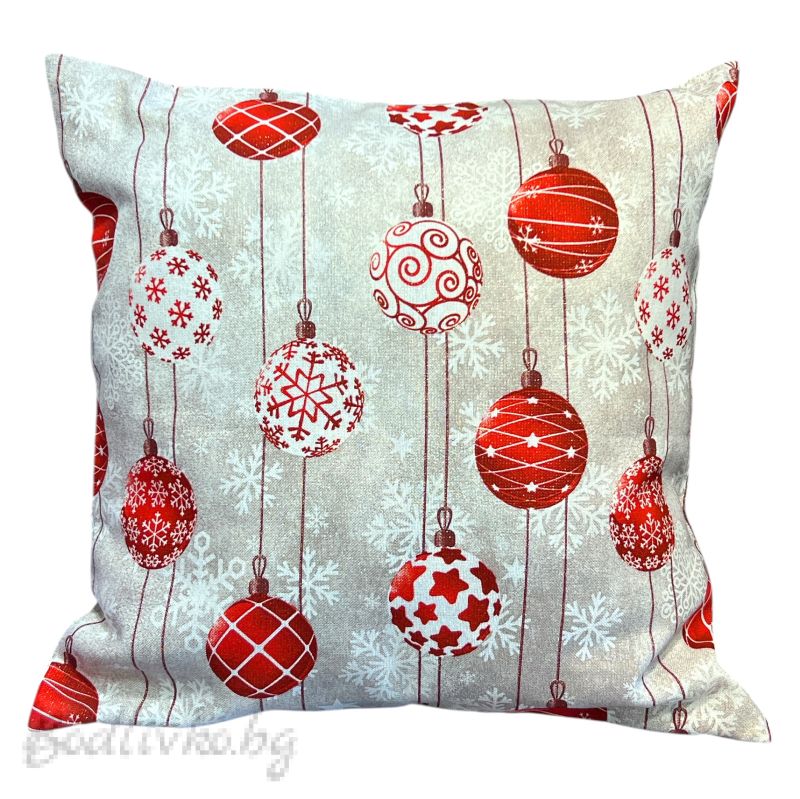 Внесете празнично настроение във вашия дом с нашата двулицева калъфка за възглавничка! С размер 45/45см и очарователен дизайн с червени топки, тя е идеалният акцент за Коледа.