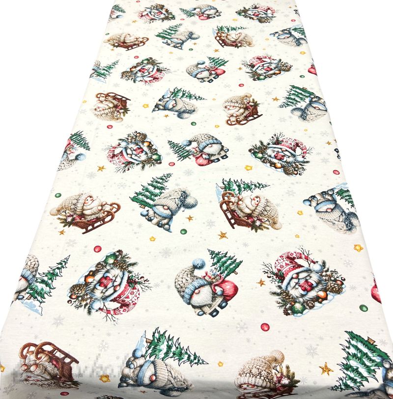 Внесете празнично настроение във вашия дом с тази прекрасна коледна покривка! Декорирана с очарователни снежни гномчета, тя е перфектният завършек на вашата коледна трапеза.