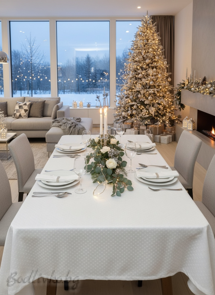 Създайте празнична атмосфера с нашата коледна покривка за маса, изработена от висококачествена панама.