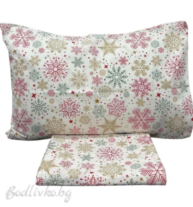 Коледен спален комплект за еднично легло "Снежинки"- 100% памук (Ранфорс), 3 части