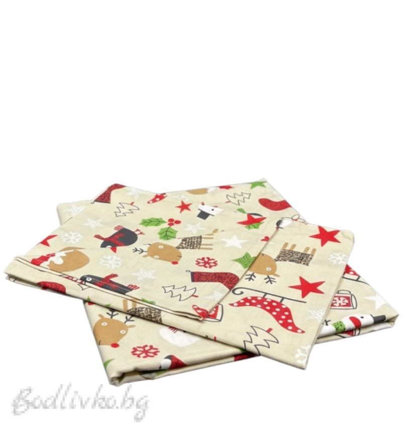 Коледен спален комплект за еднично легло "КОЛЕДНИ МОТИВИ"- 100% памук (Ранфорс), 3 части
