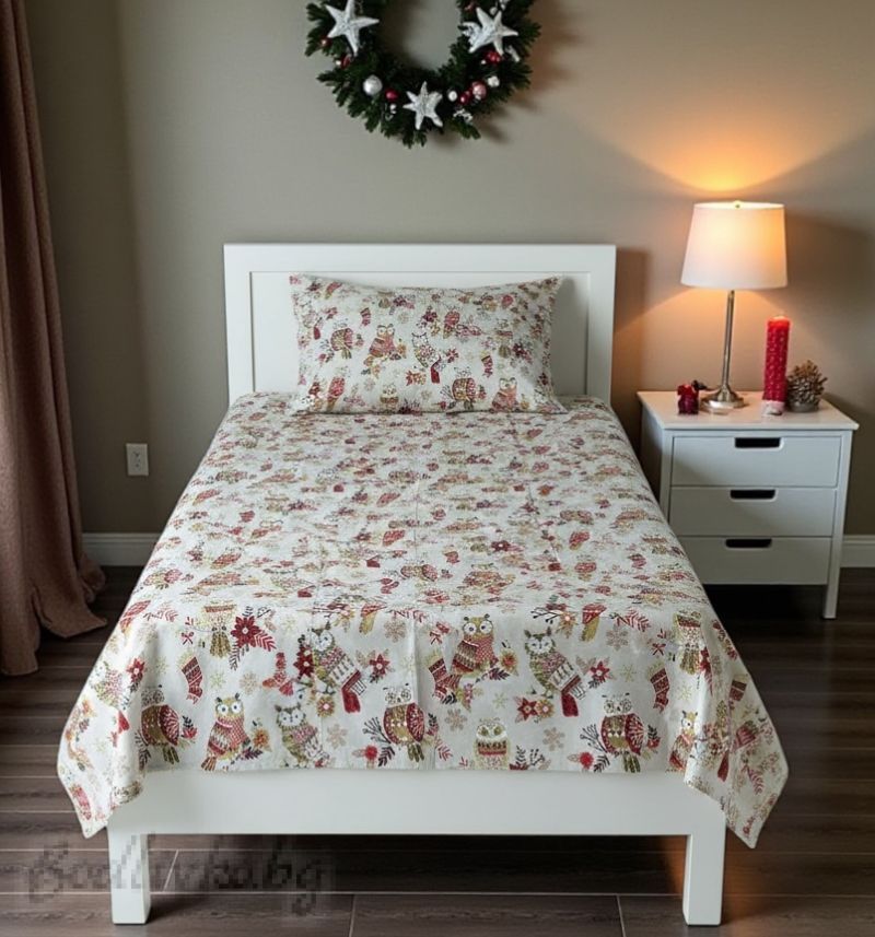 Коледен спален комплект за единично легло "БУХАЛЧЕТА"- 100% памук (Ранфорс), 3 части