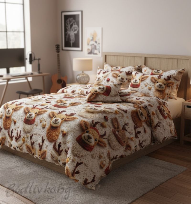 Подарете си лукс и комфорт с нашия спален комплект, изработен от 100% ранфорс с дигитален 5D принт. Уникалният десен със еленчета ще превърне спалнята ви в оазис на любовта и елегантността.