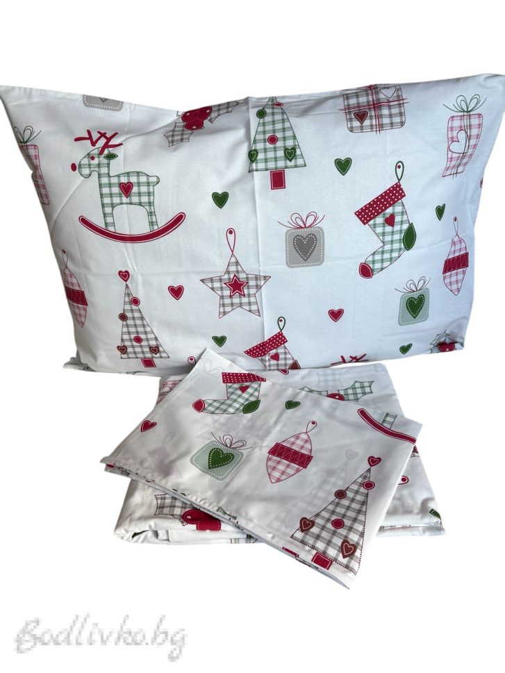 Коледен спален комплект за единично легло "КОЛЕДНИ МОТИВИ"- 100% памук (Ранфорс), 3 части