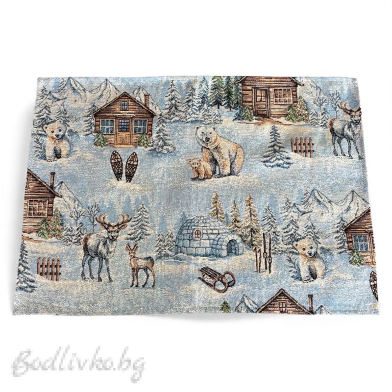 - Зимен дизайн с животни и хижи.