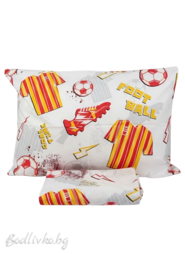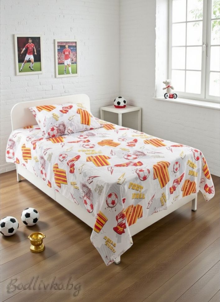 КОМПЛЕКТ ЗА ЕДИНИЧНО ЛЕГЛО ФУТБОЛ , 100% натурален памук (ПОПЛИН), 3 части