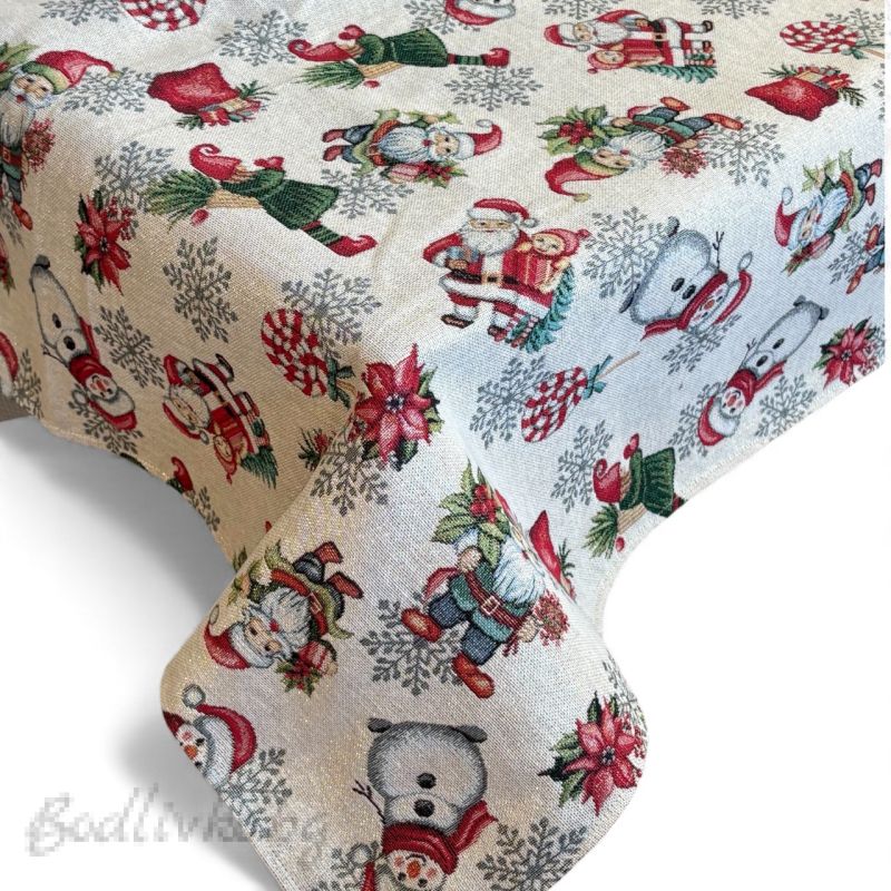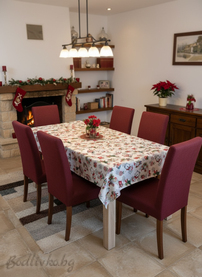 ПОКРИВКА ЗА МАСА ЖАКАРД ДЯДО КОЛЕДА И СНЕЖКО, НАЛИЧНА В няколко РАЗМЕРА