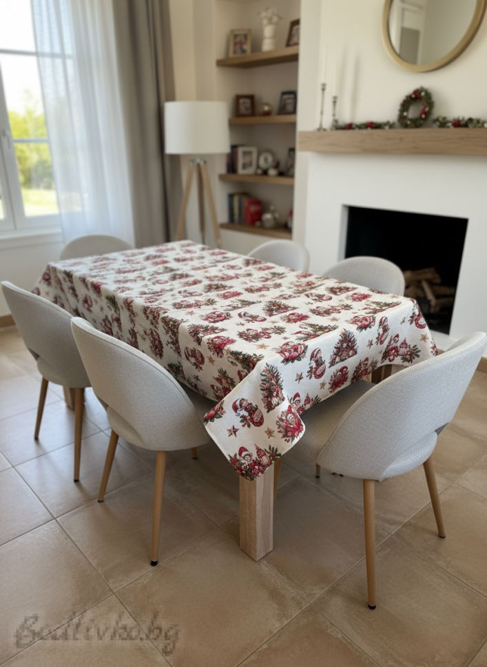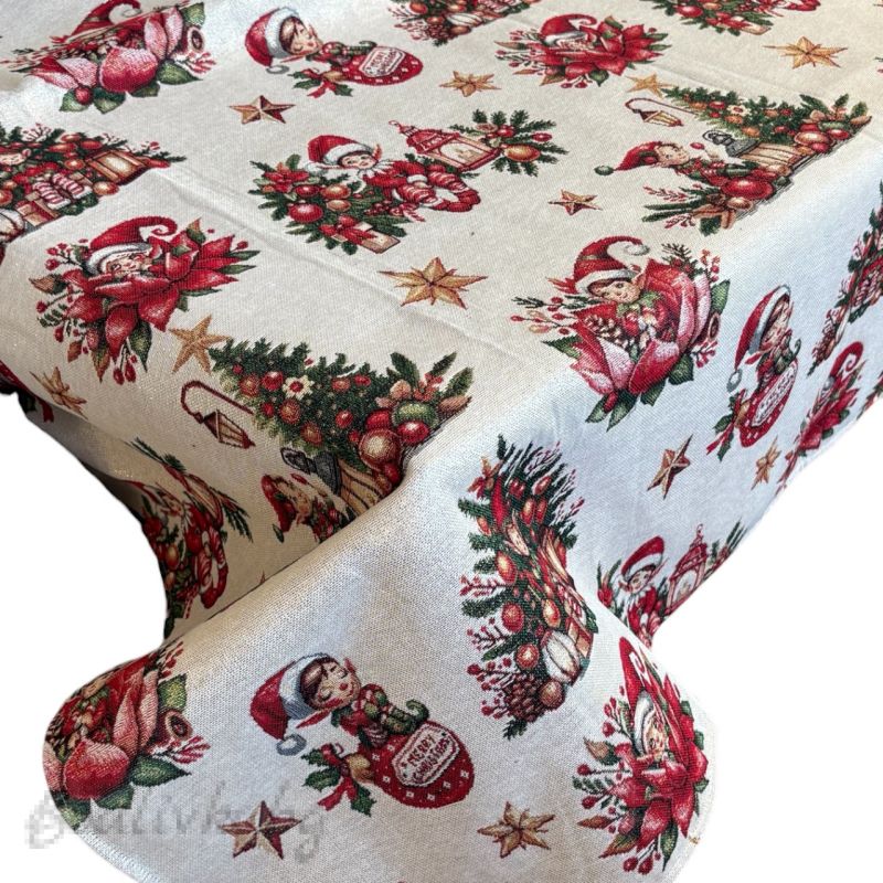 ПОКРИВКА ЗА МАСА ЖАКАРД КОЛЕДНИ ЕЛФИ, НАЛИЧНА В няколко РАЗМЕРА
