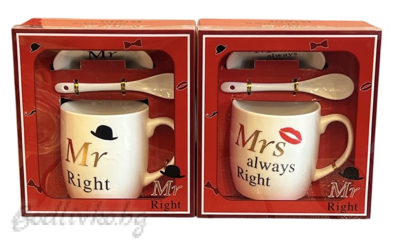 Изберете стил и класа с нашите елегантни чаши "Mr Right" или "Mrs Always Right"! Всяка чаша се предлага със стилна лъжичка и чинийка, идеално опаковани в красива кутийка.