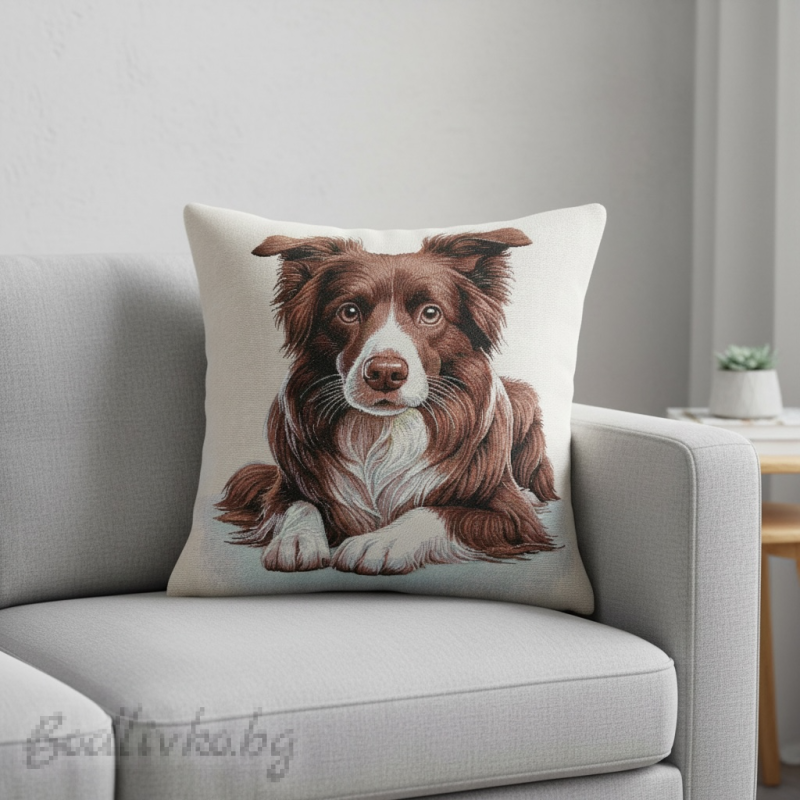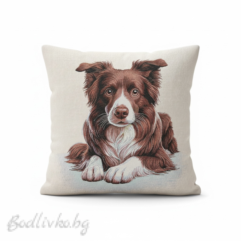 Калъфката е изработена от висококачествени материали, които осигуряват нейната издръжливост и мекота. Изображението на кучето Коли е изпълнено с внимание към детайла, улавяйки неговия очарователен и приятелски характер. Топлите цветове и реалистичните детайли ще внесат живот и индивидуалност във вашето пространство.