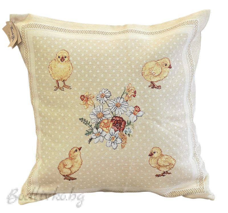 Обогатете дома си с чар и уют с нашата очарователна калъфка за възглавничка "Пиленца". Тази възхитителна калъфка, с размери 45/45 см, е идеална за добавяне на нотка пролетна свежест към вашия хол, спалня или детска стая.