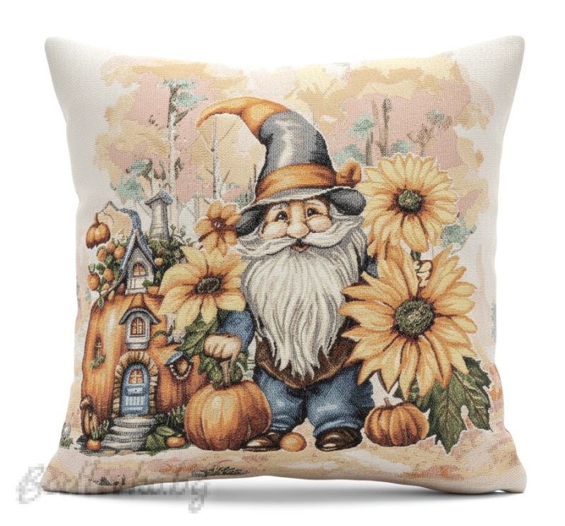 Изобразява симпатично джудже, заобиколено от ярки слънчогледи и тикви, носещо празнично настроение. Топлите цветове и детайлният дизайн превръщат тази калъфка в истинско произведение на изкуството.